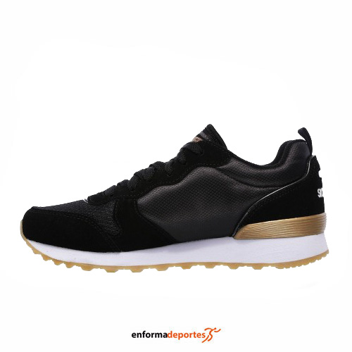 Zapatilla mujer SKECHERS RETROS OG GOLDN GURL, con parte superior ante, malla y nailon, con cierre de cordones clásicos, costuras, paneles de malla en la parte superior para mayor transpirabilidad, cuello y lengüetas acolchadas, plantilla Memory Foam Air Cooled, media suela para la absorción de impactos, suela con tracción de goma flexible, estilo casual, retro.