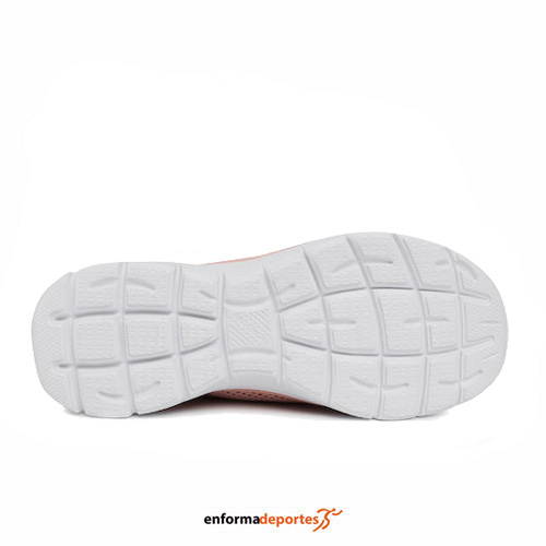 Zapatilla mujer SKECHER SUMMITS, confeccionada con malla, de una sola pieza, cuello y lengüeta acolchados, cierre con cordones elásticos, forro interior de tela, plantilla Memory Foam, media suela flexible y ligera, suela con tracción flexible.