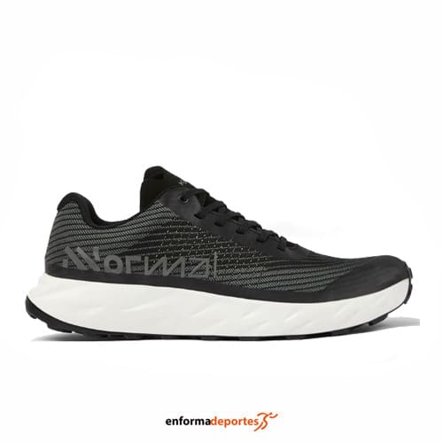 Zapatilla unisex NORMAL KJERAG, confeccionada en su parte superior con upper Matryx® Jacquard, muy transpirable y resistente gracias a su confección a partir de hilos de poliamida y Kevlar® revestidos individualmente, con Mediasuela EExpure, nueva generación de espuma diseñada específicamente para zapatillas de trail con un drop de 6 mm en cada zapatilla, con suela VIBRAM® Megagrip, adherente y duradera, VIBRAM® Litebase, reduce de forma drástica el 30% del peso total de la suela gracias a una reducción del grosor en un 50%. Todo esto sin alterar el grueso óptimo de los tacos de 3,5 mm.