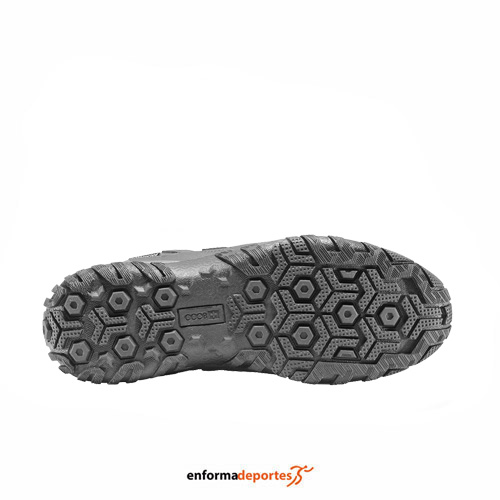 Zapato hombre +8000 TRIVON, suela tiene una planta de tacos que proporciona un gran agarre en todo tipo de terrenos, la suela se completa con la media suela de phylon que proporciona una óptima amortiguación.  Tiene membrana WATERPROOF que nos garantiza la impermeabilidad y la transpirabilidad. La planta cosida al corte y unida directamente a la mediasuela proporciona una mayor estabilidad y comodidad.
