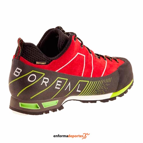 Zapato hombre BOREAL DROM, confeccionada en su parte superior en piel en Serraje hidrofugado de 2 mm y Teramida SL, con lengüeta integrada en el corte y puntera de protección en goma, sistema de acolchado HFS para una perfecta sujeción, forro enterizo con Sistema Dry-Line FLS para una mejor impermeabilidad y transpiración, con palmilla Boreal PB-60 además de una capa de EVA como aislante y confort y suela Vibram, de caucho y bandeleta de EVA y PU.