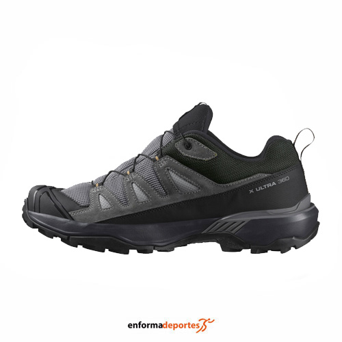 Zapato hombre SALOMON X ULTRA 360 LTR GTX, fabricada en su parte exterior de piel, cuero natural, con cierre con tecnología Quicklace, impermeable gracias a tecnología Gore-Tex, con media suela EnergyCell, amortiguación y comodidad, suela All Terrain Contagrip que garantiza tracción en cualquier tipo de superficie.